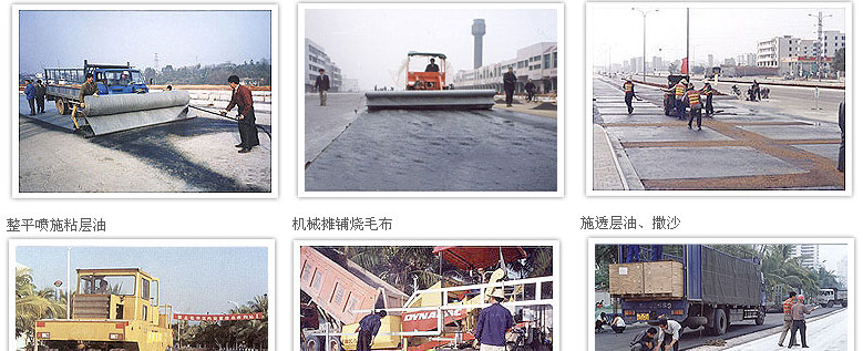 新建路面半刚性稳定层,旧刚性或沥青混凝土路面整平喷施粘层油,机械摊铺烧毛布(粗糙面朝上)施透层油、撒沙、胶轮压路机辗压、铺沥青混凝土罩面层、烧毛布形成防水夹层,使旧路面层裂缝通过夹层应力消散,可避免延伸到面层,使路面提高运行质量,延长使用年限。
