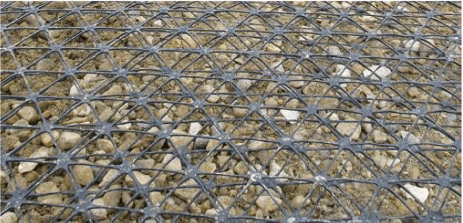 多向土工格栅是在塑料单向拉伸土工格栅 和塑料双向拉伸土工格栅的 基础上,研发和改进的新产品,材料是用高分子聚合物(聚丙烯)通过挤压、拉伸、成板、冲孔过程,后再纵向、横向拉伸,和Z方向拉伸,该产品在三维方向上增加一个方向拉伸而成。